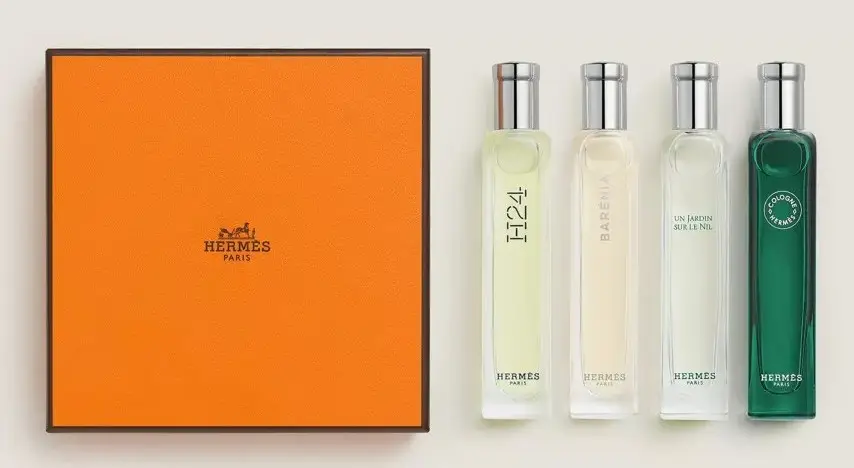 Hermès(エルメス)のミニ香水は、ブランドならではの上質さと洗練された香りを気軽に楽しめるのが魅力です。「ノマド 4本セット」は、15mlのノマドスプレーを4本自由に組み合わせてオリジナルのセットを作ることができ、オレンジボックスにセットして届けられます。エルメスのミニ香水で、日々の気分やシーンに合わせた香り選びを楽しんでみてはいかがでしょうか。