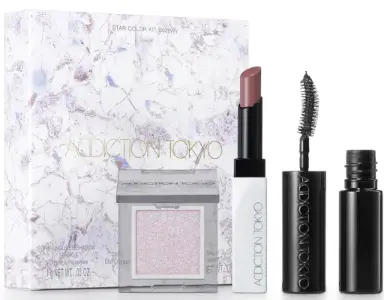 存在感を放つスパークルカラーが魅力的なアイシャドウや、落ち着いた色味のリップバーム、マスカラがセットになっているため、これ一つで上品なメイクを完成させることができます。