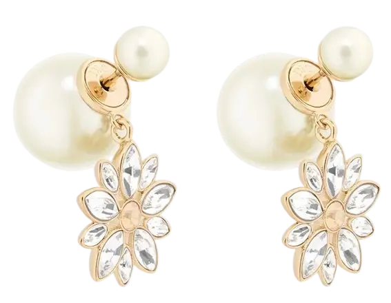 ディオールは、オートクチュールのエスプリを感じさせる、フェミニンで洗練されたデザインのピアスで人気を集めています。特に、耳の前後で異なる大きさのパールが存在感を放つ「トライバル」ピアスは、アシンメトリーなデザインで一大ブームを巻き起こしました。
